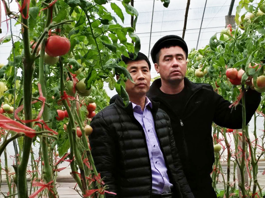 張總與哈薩克斯坦技(jì)術(shù)人(rén↓$)員(yuán)進棚區(qū)參觀交流
