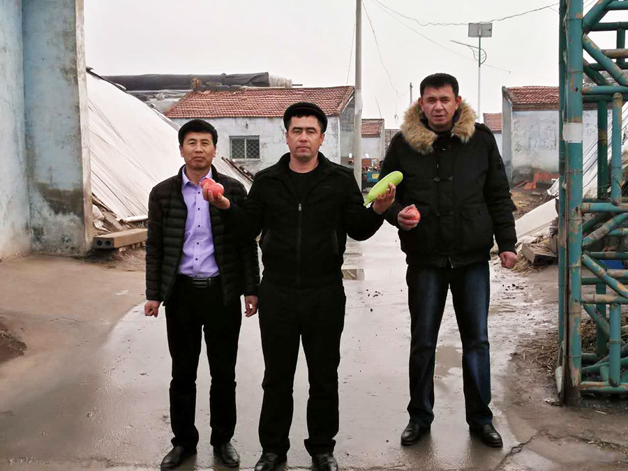 張總與哈薩克斯坦技(jì)術(shù)人 ₽(rén)員(yuán)進棚區(qū)參觀留念